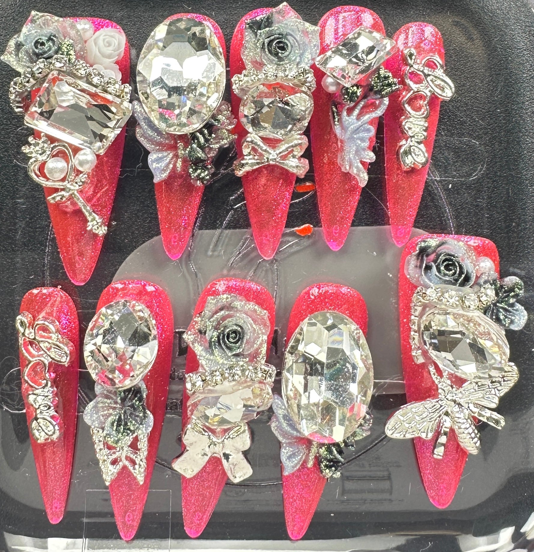 The Blossom & Glamour Collection – every set is a handcrafted floral masterpiece. Meticulous, multi-step artistry blooms on each nail, adorned with crystals and ornate details. Each design is one-of-a-kind, waiting for its only owner.
