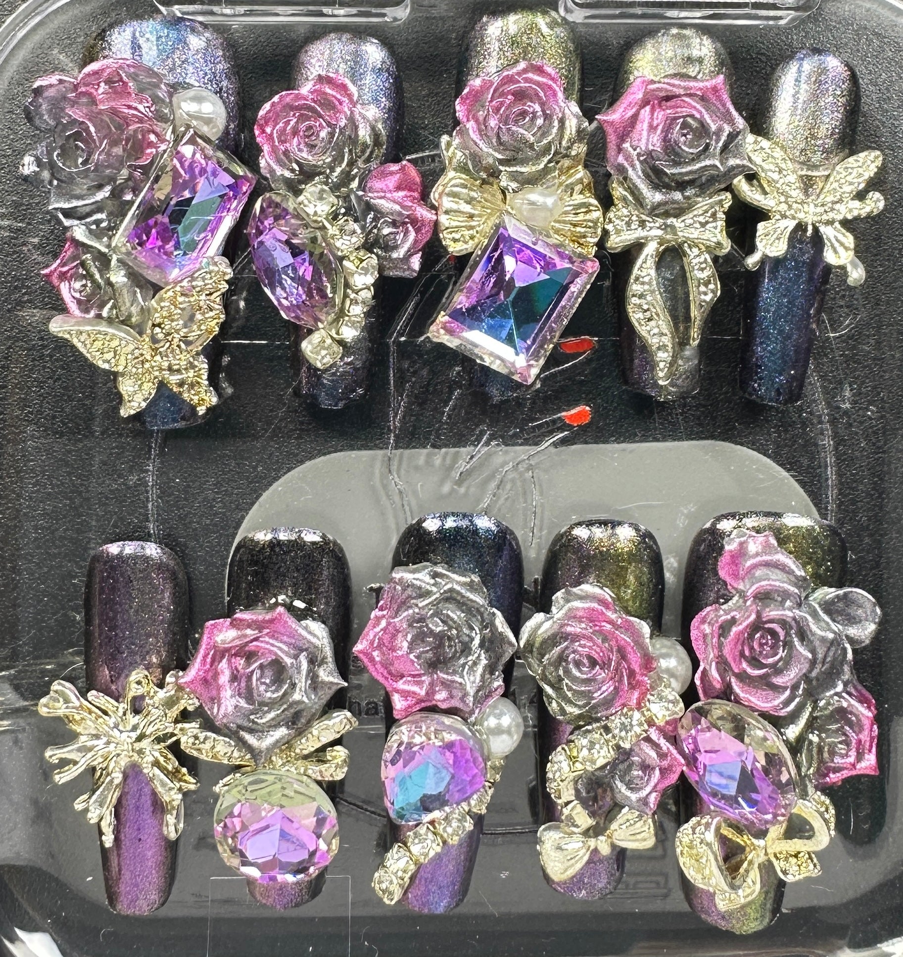 The Blossom & Glamour Collection – every set is a handcrafted floral masterpiece. Meticulous, multi-step artistry blooms on each nail, adorned with crystals and ornate details. Each design is one-of-a-kind, waiting for its only owner.