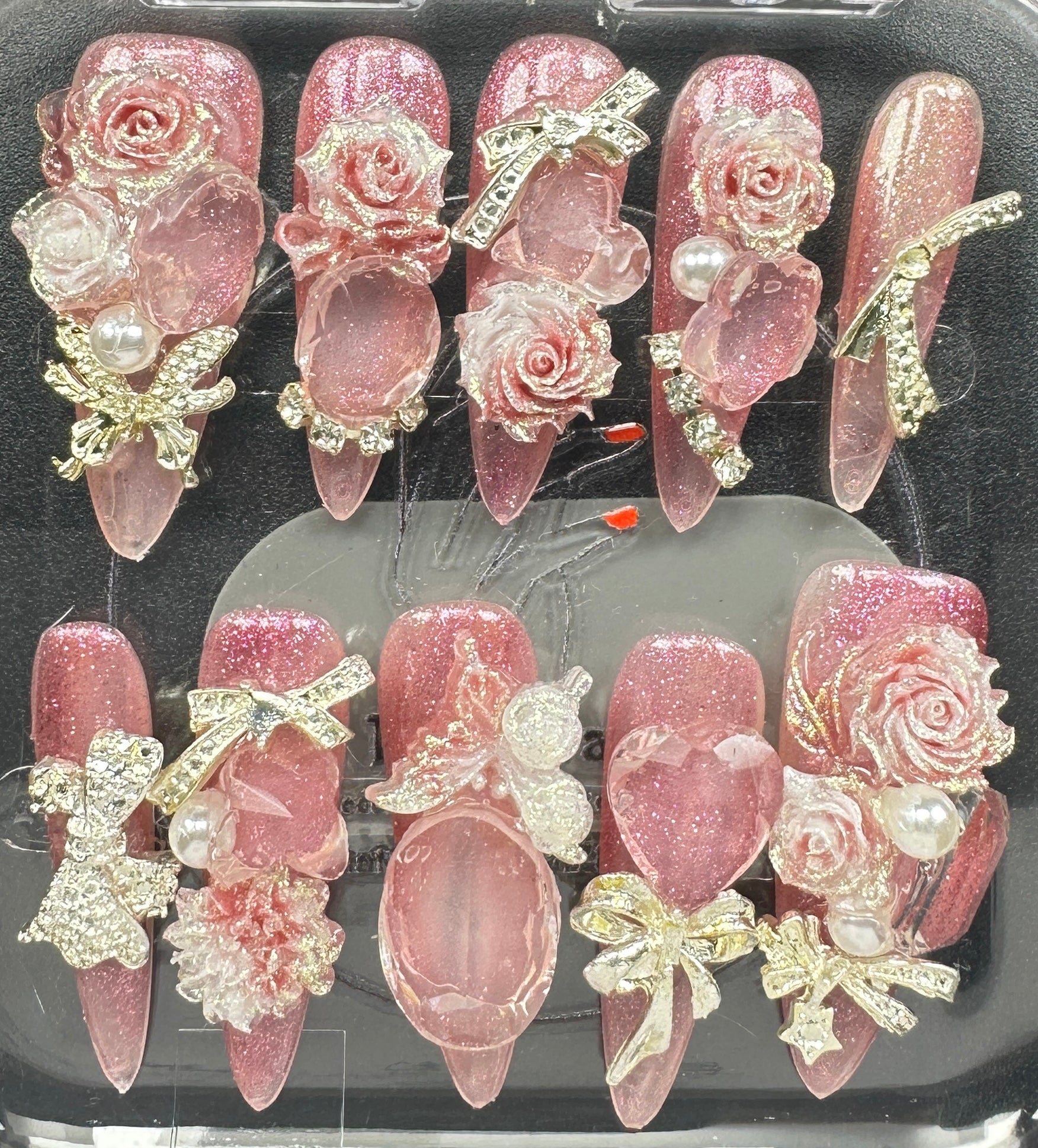 The Blossom & Glamour Collection – every set is a handcrafted floral masterpiece. Meticulous, multi-step artistry blooms on each nail, adorned with crystals and ornate details. Each design is one-of-a-kind, waiting for its only owner.