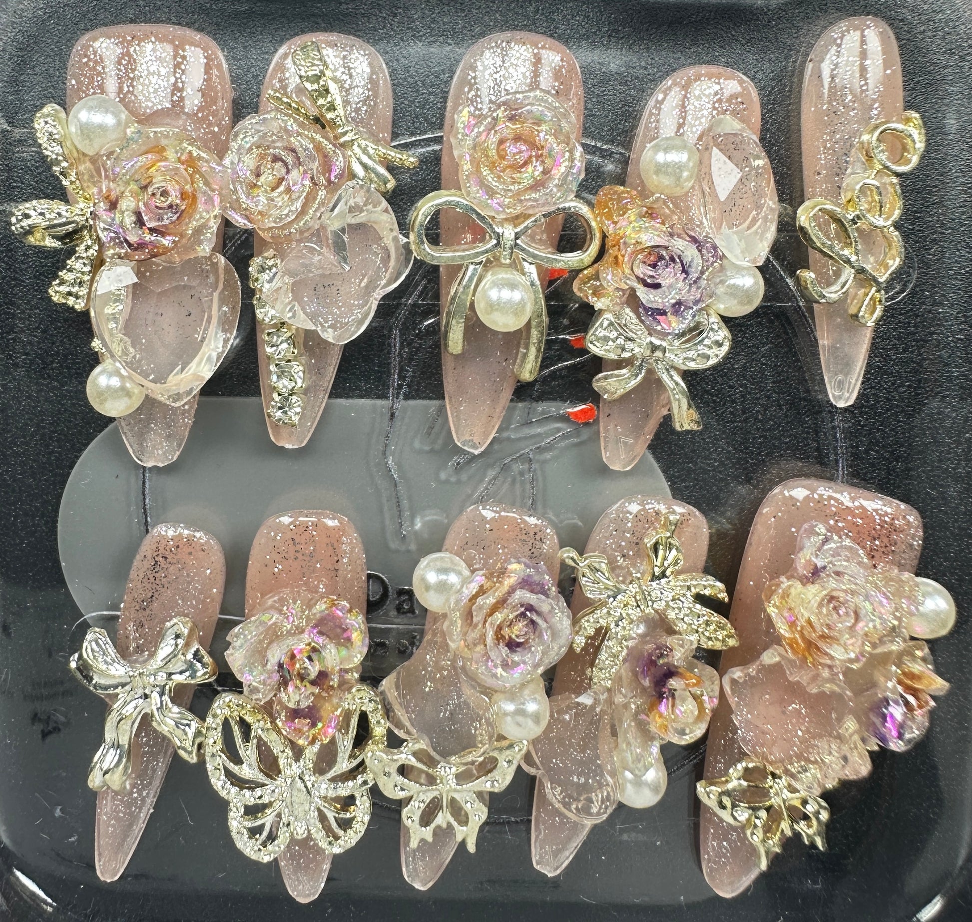 The Blossom & Glamour Collection – every set is a handcrafted floral masterpiece. Meticulous, multi-step artistry blooms on each nail, adorned with crystals and ornate details. Each design is one-of-a-kind, waiting for its only owner.