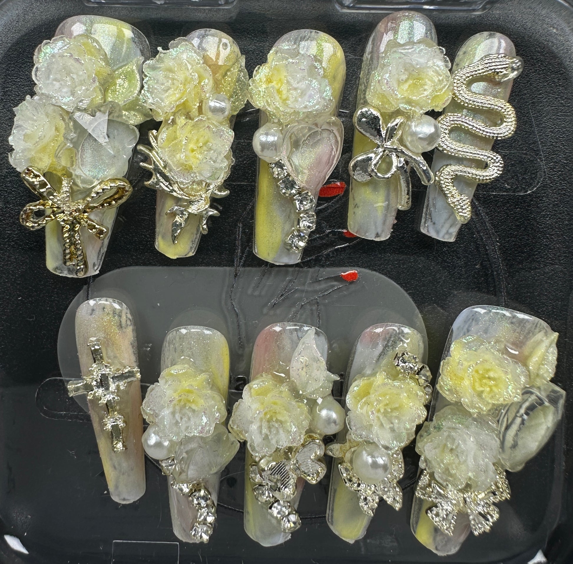 The Blossom & Glamour Collection – every set is a handcrafted floral masterpiece. Meticulous, multi-step artistry blooms on each nail, adorned with crystals and ornate details. Each design is one-of-a-kind, waiting for its only owner.