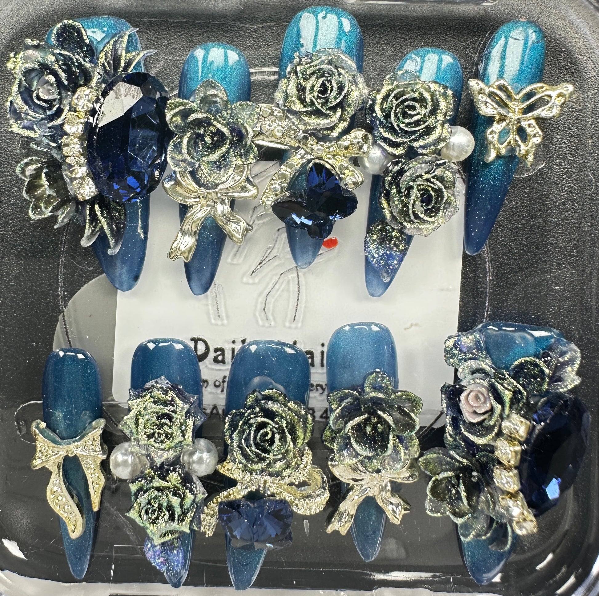 The Blossom & Glamour Collection – every set is a handcrafted floral masterpiece. Meticulous, multi-step artistry blooms on each nail, adorned with crystals and ornate details. Each design is one-of-a-kind, waiting for its only owner.