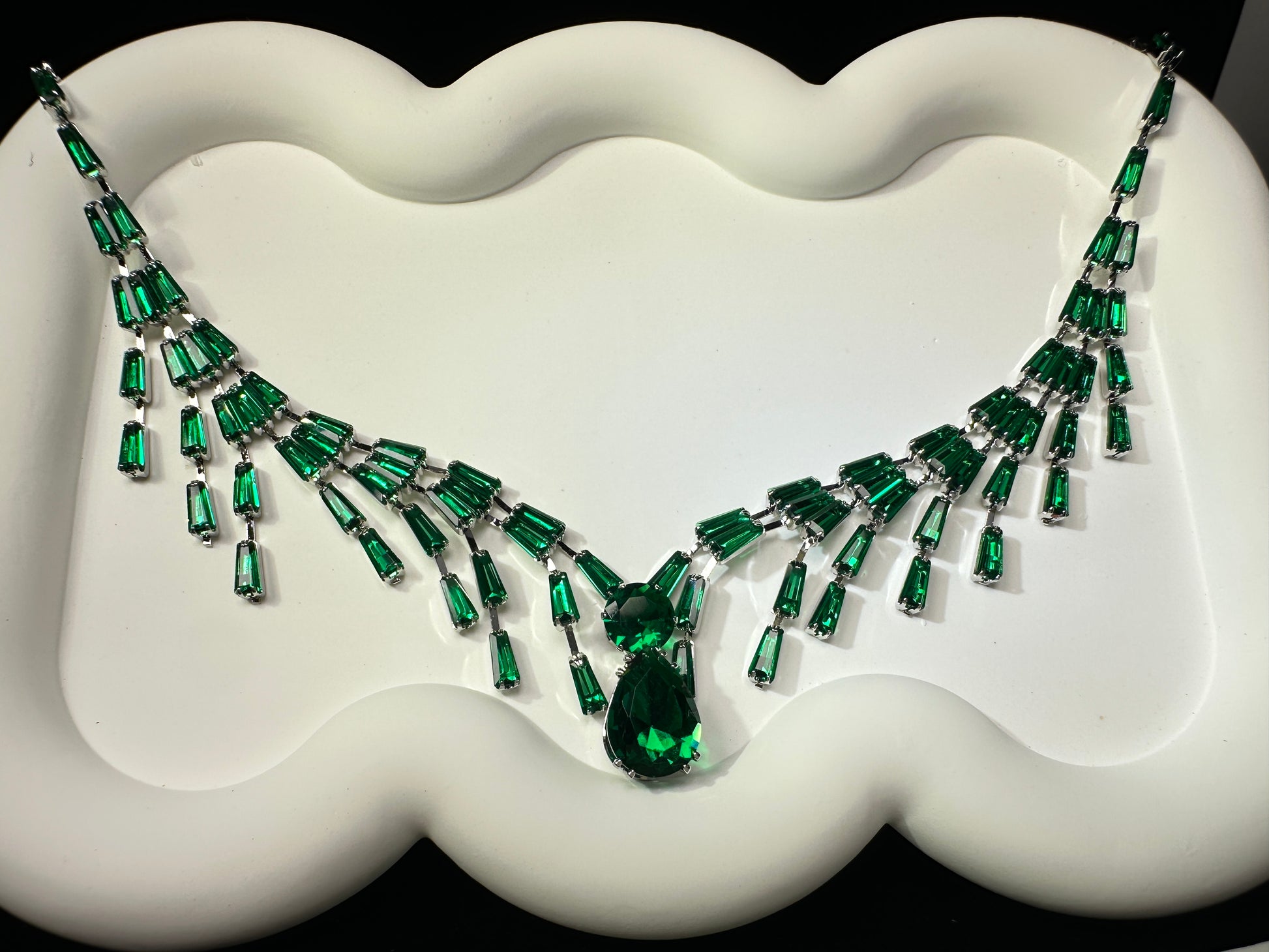 Inspired by the verdant green of early spring tundra. This fresh, natural colour collides with architectural geometric lines, symbolizing renewal and growth. Wearing it is like carrying a whisper of the serene forest with you.
