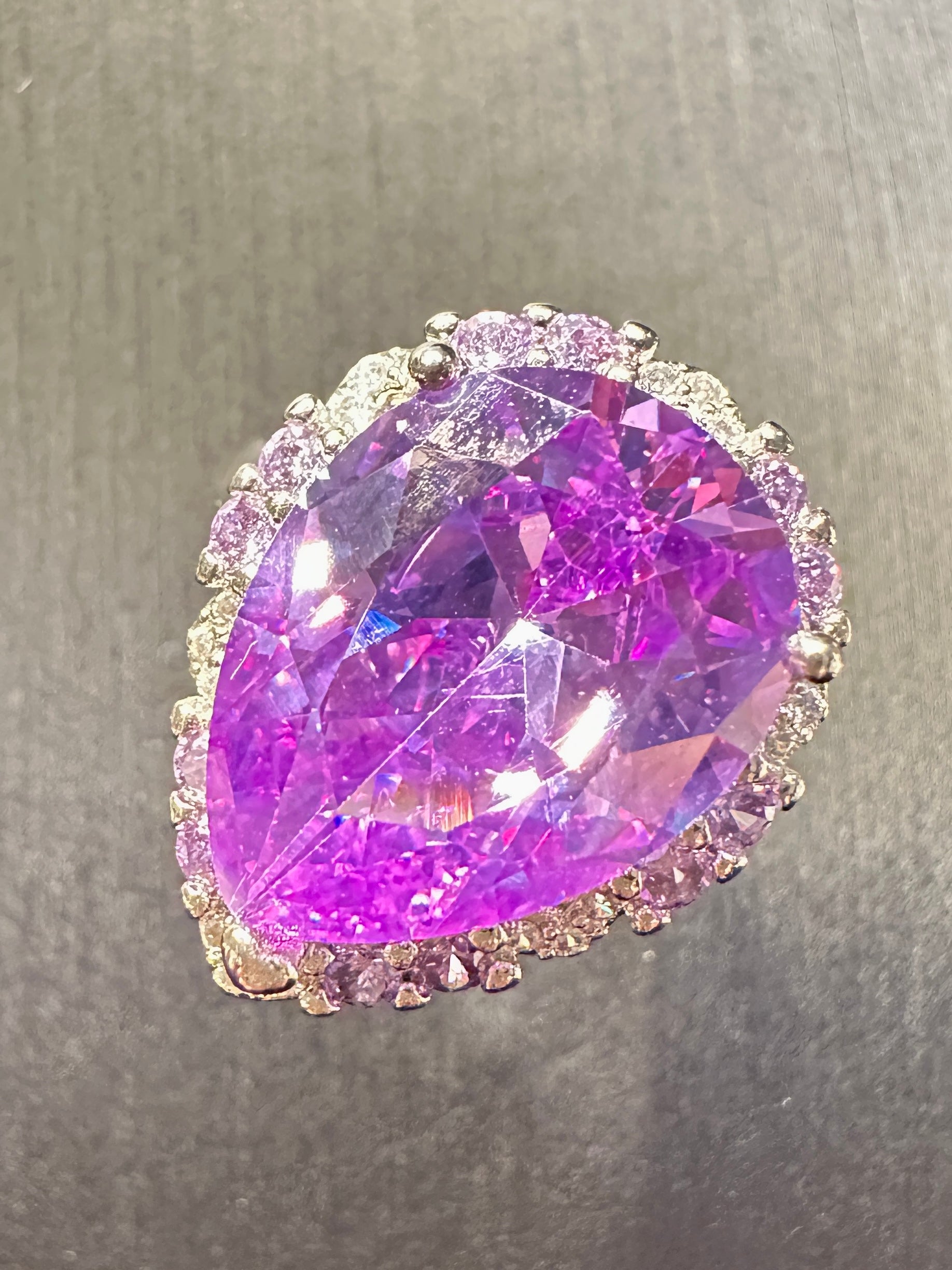 The Violet Whisper Collection is a harmonious symphony of three pieces, designed to adorn you with a consistent thread of grace and mystique. Centered around the captivating allure of a pear-cut purple gemstone, this set is for the woman who commands attention not with volume, but with refined, intentional beauty.