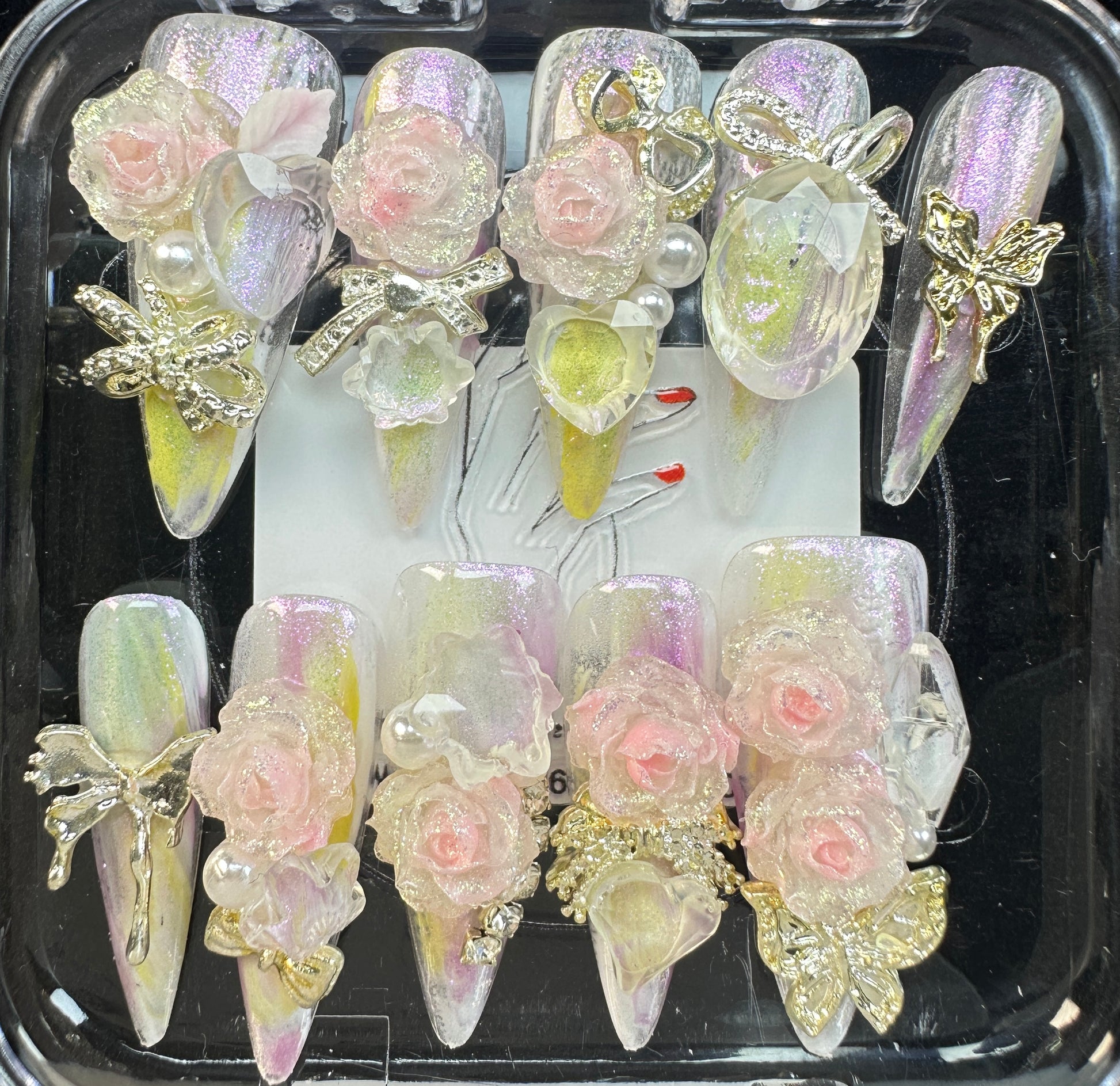 The Blossom & Glamour Collection – every set is a handcrafted floral masterpiece. Meticulous, multi-step artistry blooms on each nail, adorned with crystals and ornate details. Each design is one-of-a-kind, waiting for its only owner.